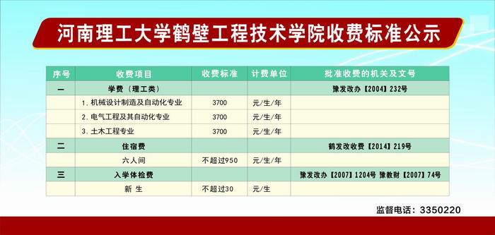 2015级本科教育收费标准公示